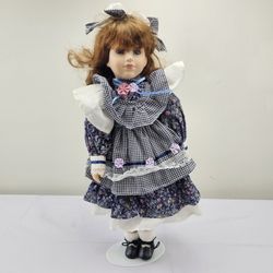 Victorian Style Porcelain Doll Blue Dress 16” Blue Eyes with Stand$35Durham, NC
