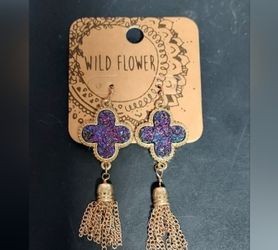 Purple Iridescent Glitter Gold Tone Metal Cross Chain Tassel Earrings Art Boho$16Hopatcong, NJ