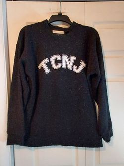 TCNJ Woolly Threads Black Sweater Med Boucle Fuzzy College Of New Jersey Nubby$25Hopatcong, NJ