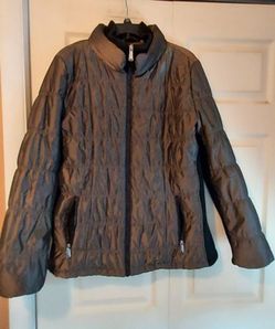 Calvin Klein Womens XL Brown Quilted Puffer Jacket Black Ribbed Neck Sides Warm$35Hopatcong, NJ