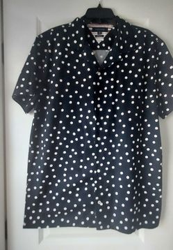 Tommy Hilfiger Woven Polka Dot Navy Blue Button Front Shirt XL Preppy SS$24Hopatcong, NJ