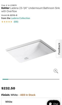 Kohler Ladena 23-1/4" Undermount Bathroom Sink with Overflow$80Park Ridge, IL