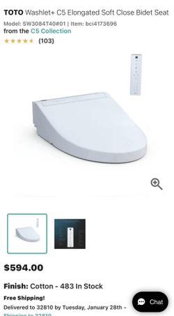 TOTO Washlet + C5 Elongated Soft Close Bidet Seat Model: SW3084T40#01$335Park Ridge, IL