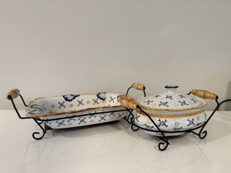 Floral Ceramic Serving Dish Set with Wooden Handles$60Savannah, GA