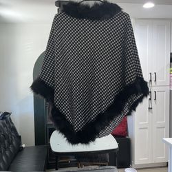 Black And White Houndstooth Fur Lined Poncho$8Fullerton, CA