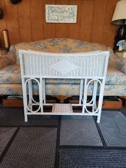White Wicker Planter Table galvanized flower liner PLANT STAND IN GREAT CONDITION coastal boho chic$100Hellertown, PA