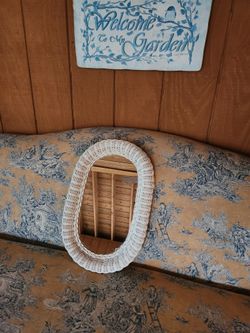 Boho White Wicker Oval Mirror 19x12 Dresser vanity perfume tray? rattan beachy$20Hellertown, PA