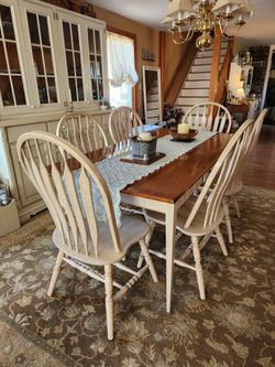 6ft. Amish made farm house table w/drawer primitive pine shaker & 6 white washed wood windsor chairs$1,000Hellertown, PA