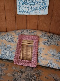Boho Pink Wicker Mirror 16x12 Dresser vanity perfume tray? rattan beachy Mauve dusty rose$20Hellertown, PA