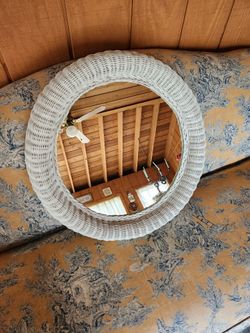 Boho White Wicker 24" Round Mirror rattan beach$30Hellertown, PA