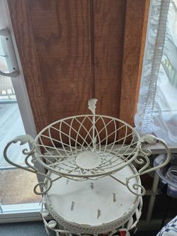 Vintage Farmhouse White Wire Bowl fruit/vegetable/plant Wrought Iron Leaf Deco Footed Basket$15Hellertown, PA