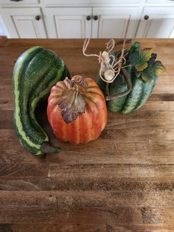3 Fall décor gourd, pumpkins, orange/green veggies, basket included, table top centerpiece!$5Hellertown, PA