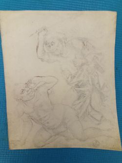 ANTIQUE 1500s PIETER BRUGEL THE ELDER HAND SIGNED AND STAMPED MIXED MEDIA OIL AND GRAPHITE ON PAPER DRAWING $7,000The Bronx, NY
