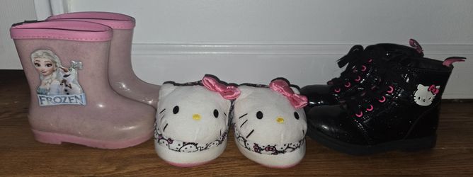 Lot Of 3 Elsa Rain Boots, Hello Kitty Boots, Plush Slippers Size 11-13$60The Bronx, NY
