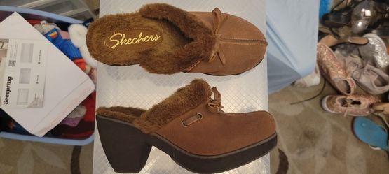 Skechers Vintage Brown Suede Fur-Lined Platform Mules-Disco Bunny-Size 7$25Mesa, AZ