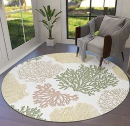 Round Area Rug 6ft Nautical Coastal Ocean Coral Floor Carpets Indoor Soft Stain-Proof Mat Circle Rugs for Living Dining Room Kitchen Bedroom Entryway $15Cypress, TX