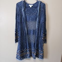 Christopher & Banks knit sweater hooded duster cardigan size large petite navy blue and tan $10Princeton, WV
