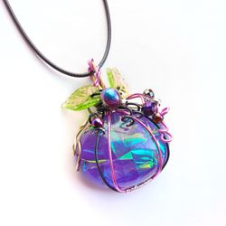 Iridescent purple pumpkin wire wrapped pendant with pink black copper wire new$18Princeton, WV