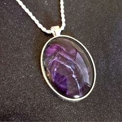 Sterling silver purple and black swirl acrylic paint pour oval necklace goth New$26Princeton, WV