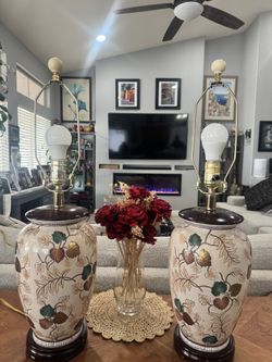 Pair of Gorgeous Chinoiserie Embossed Porcelain Lamps Hand Painted, Wood Base.$225Henderson, NV