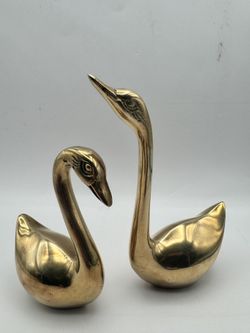 VTG Pair Of Stylized Solid Brass Swan Figs. With A Minimalist Design 5.5In & 4in$55Henderson, NV