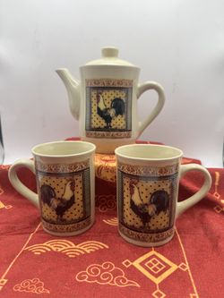 VTG Bay Island Inc. Ceramic Teapot & 2 Mugs W/Rooster Decoration MW & DW Safe$37Henderson, NV