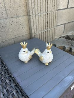 2 wooden bird figurines with gold crown accents$10Huntington Beach, CA