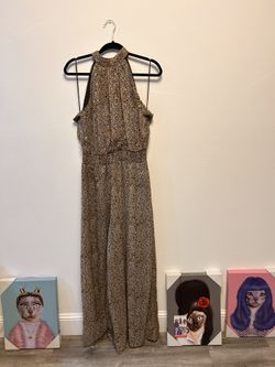 New Without Tags Jumpsuit Romper Size L Animal Print with Gold Ties At Neck Fully Lined $30Boca Raton, FL