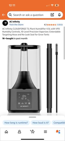 AC Infinity CLOUDFORGE T3, Plant Humidifier 4.5L with VPD Humidity Controls, 10-Level Precision Vaporizer $30Hudson, FL