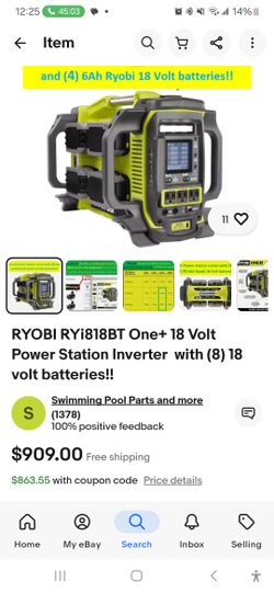 RYOBI ONE 18V Power Station Battery Inverter Push Button Generator RYi818BT$600Newport News, VA
