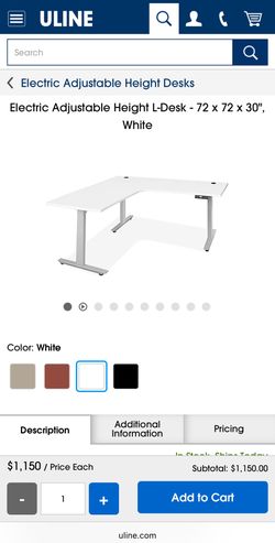 ULINE Industrial Grade Electric Adjustable Height L-Desk - Corner Office Table In White$550Fullerton, CA