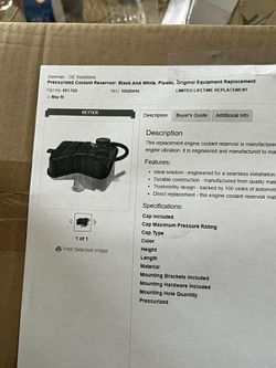 Pressurized coolant reservoir: black and white, plastic, original equipment replacement$45Costa Mesa, CA