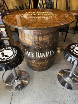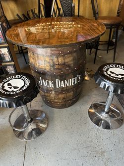 Jack Danielle Barrel Tables With Harley Davidson Stools$425Fontana, CA