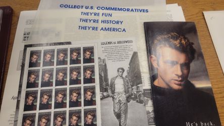 James Dean Legends of Hollywood Commemorative Stamp Sheet & USPS Folder – 1996 32¢ Stamps (Complete Set)$50Torrance, CA
