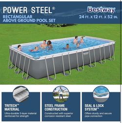 Bestway Power Steel 24' x 12' x 52" Rectangular Metal Frame Above Ground Swimming Pool Set with 1500$990Skokie, IL