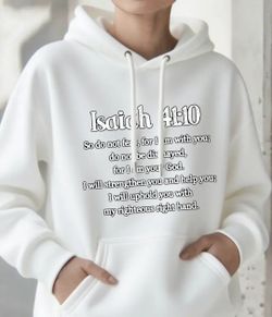New, "Isaiah 41:10" Christian Hoodie in white$40Long Beach, CA