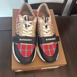 BURBERRY Red & Beige Ramsey Check Sneakers$500San Diego, CA