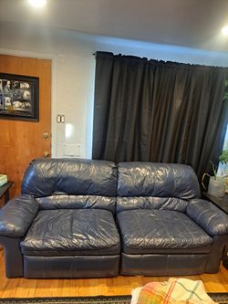 All Leather Navy Blue Sofa W/Recliners. Approx 7' Long Good Working Condition $100Denver, CO