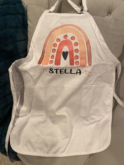 white apron with word Stella and pockets and adjustable straps at the neck. See the measurements in the pictures.$19Puyallup, WA