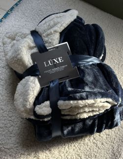 NEW Navy Blue 50X60 Luxe Velvet Sherpa Throw $23 π$23Rialto, CA