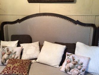 Beautiful Linen Padded Wood Wingback Nail Studded Trim - King Headboard & Footboard with Wood Side Rails$100Spring Branch, TX
