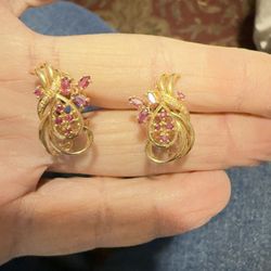 🎁BEAUTIFUL 14 K YELLOW GOLD EARRINGS WITH RUBIES AND DIAMONDS🎁$500El Paso, TX
