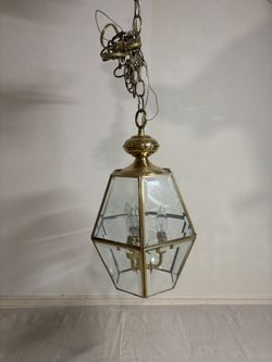 Art Deco Hanging Ceiling Brass Fixture w Pressed Base Glass Shades Diamond Shape$50Houston, TX