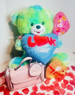 Musical Valentines teddy bear with Valentine’s balloon, cosmetic bag, Bath & body Works Japanese cherry Blossom cream$75Victorville, CA