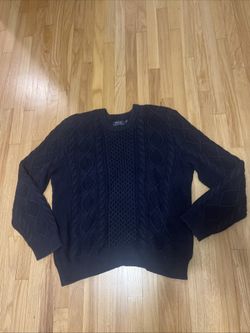 Polo Ralph Lauren Fisherman Sweater Medium Cable Knit Cotton Navy Blue$100Glendora, CA