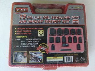 15 Piece 1/2" Drive Shallow Air Impact Socket Set Mm Metric Mechanic$20Irvine, CA