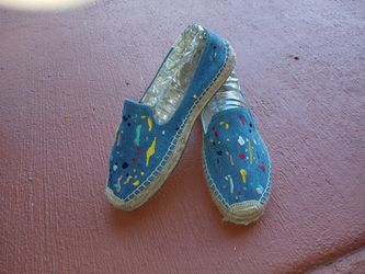 Soludos Anthropologie Embroidered Paint Splatter Espadrilles Sz 8.5 Blue Slip On$29Miami, FL