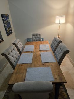 6 Seater Dining Table Solid Wood 6 Chairs Tufted Cream$200Pembroke Pines, FL