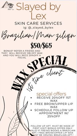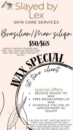Eyebrow Wax and Tent$50San Bernardino, CA