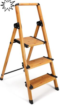 Delxo Portable Collapsible Lightweight Aluminum 3 Step Stool Step Ladder with Long Handrails and Safety Latch Mechanism, Woodgrain Finish$39City Of Industry, CA